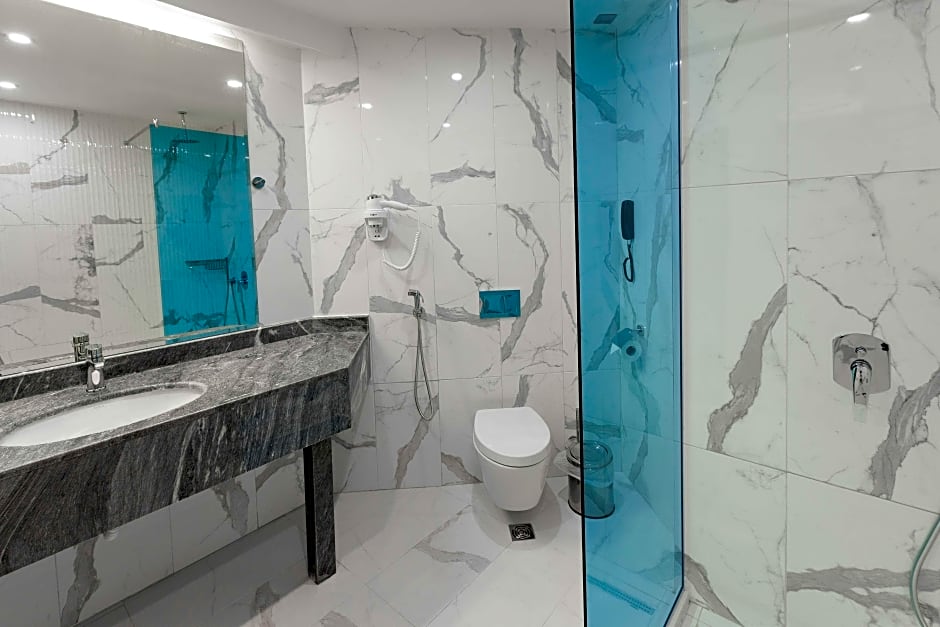 This 98 ft² Deluxe King Room has a modern design and natural light. It features a king size bed, a fully equipped mini-bar, toiletries by Geneva Guild , a rain shower, LED TV with more than 50 international channels, high speed WiFi, free safety deposit box, central air conditioning, an electrical kettle set and a balcony.